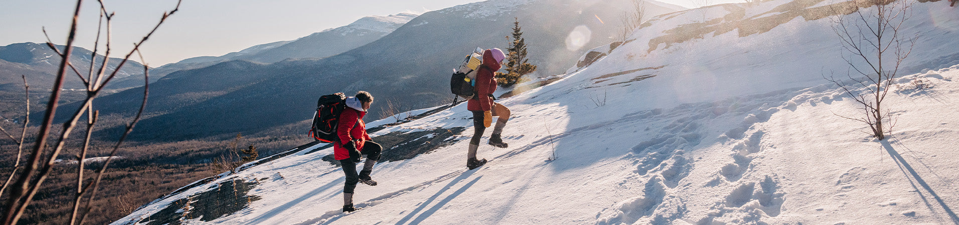 people hiking in the winter wearing midweight thermal layers and midweight balaclavas that are 100% merino wool people hiking in the winter wearing midweight thermal layers and midweight balaclavas that are 100% merino wool