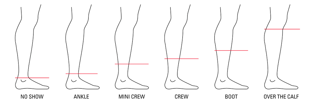 No Show: Designed to sit just below the ankle bone, at or below a standard sneaker height.